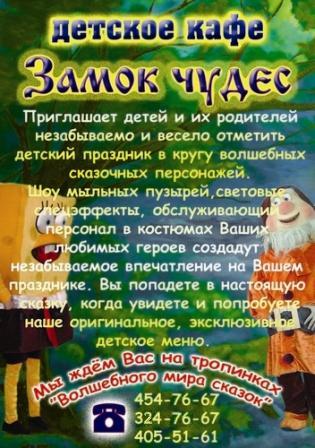 Детское кафе «Замок чудес» - Организация праздников, видео и фотосъемкаКод: 174321 Создано: 02-12-2011 22:15