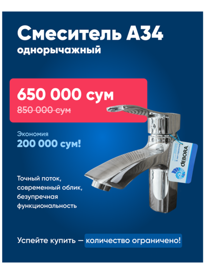 Смеситель для раковины Debora однорычажный А34 - Сантехника, отоплениеКод: 3204962 Создано: 30-09-2025 09:56