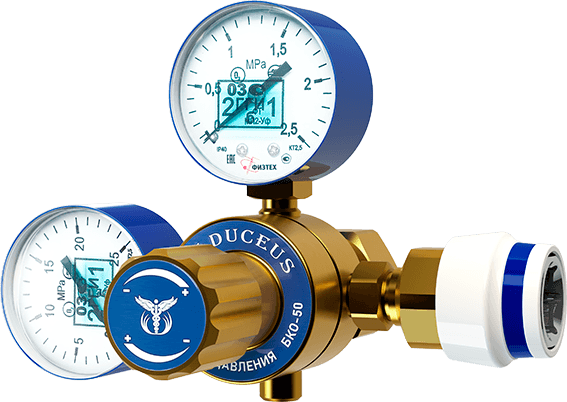 Кислородные редукторы CADUCEUS БКО-50 с быстроразъемным соединением изготавливаются в соответствии с ГОСТ 15150 в климатическом исполнении УХЛ при температуре от -25°С до +50°С.