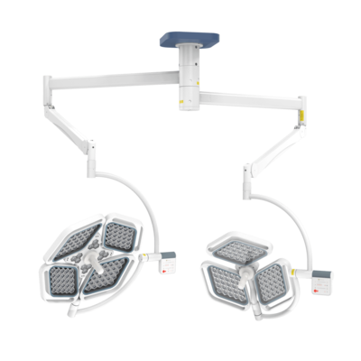 Высокофункциональные хирургические светильники CADUCEUS CL2-L3/L3 выполнены в виде системы с двумя поворотными плечами с трехлепестковыми куполами и оснащены интуитивно понятной системой управления, позволяющей оперативно настраивать требуемые для проведения хирургических манипуляций параметры: диаметр, интенсивность и фокусировку светового поля с гарантированной цветопередачей, что необходимо для создания требуемой контрастности тканей, а также увеличивает концентрацию медицинского персонала при продолжительной работе.