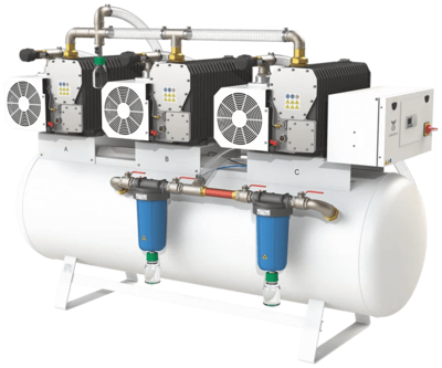 Вакуумная станция оснащена двумя (исполнение HOSPIVAC 2) или тремя (исполнение HOSPIVAC 3) вакуумными насосами на горизонтальном ресивере. Используются ротационные лопастные вакуумные насосы с принудительной смазкой и воздушным охлаждением. Вакуумные насосы могут включаться каскадно и подбираются в зависимости от предполагаемого потребления вакуума.