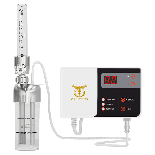 предназначен для комфортной оксигенотерапии с увлажнением при температуре, близкой к температуре тела. Устройство обеспечивает нагревание стерильной деминерализованной воды в индивидуальном небулайзере и позволяет точно дозировать подаваемую пациенту кислородно-воздушную смесь благодаря наличию расходомера. Собственный источник питания обеспечивает безопасный контакт нагревателя с водой, а удобная панель управления позволяет контролировать показатели температуры нагрева воды, подаваемой в небулайзер, а также мониторить текущие показатели работы устройства.