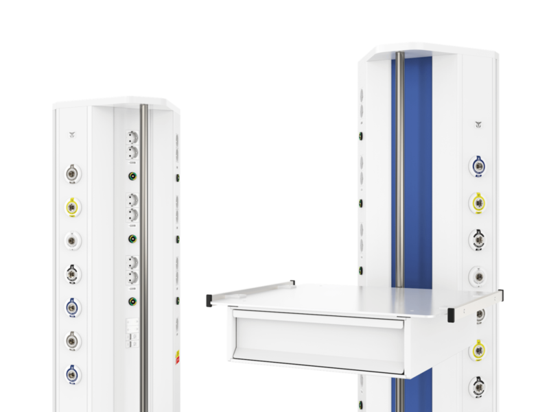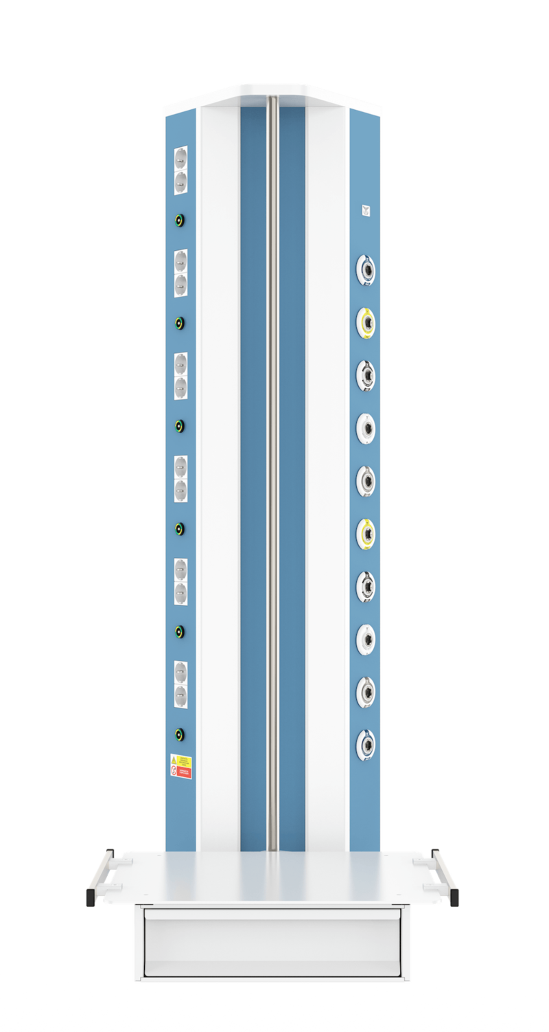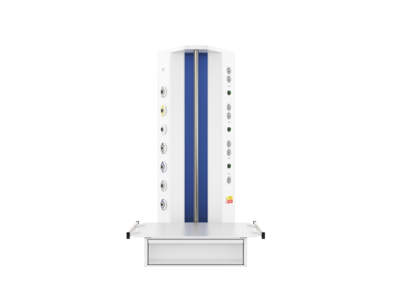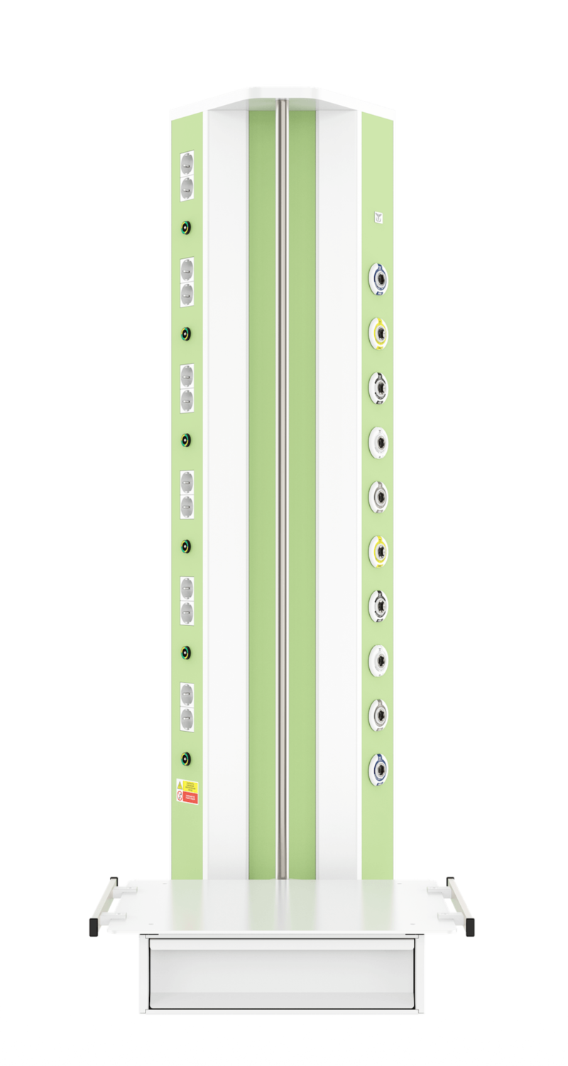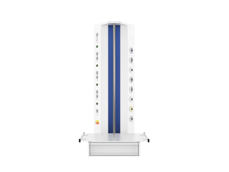 Вертикальная медицинская настенная консоль CADUCEUS CS07L используется для помещений, где невозможно установить горизонтальную консоль с необходимым функционалом. Изделие от других модификаций отличается наличием поворотной полки (полок), что позволяет максимально удобно размещать вспомогательное оборудование на консоли даже в стесненных условиях.