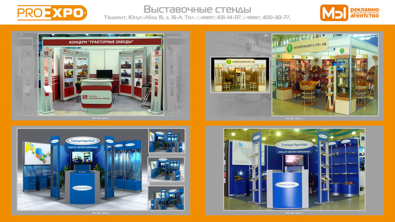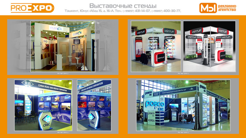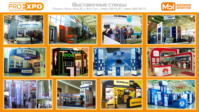 Компания «PROEXPO» (Ташкент, дочернее предприятие РПА «МЫ») предоставляет полный комплекс услуг по оформлению и застройке выставочных стендов под любой бюджет заказчика: